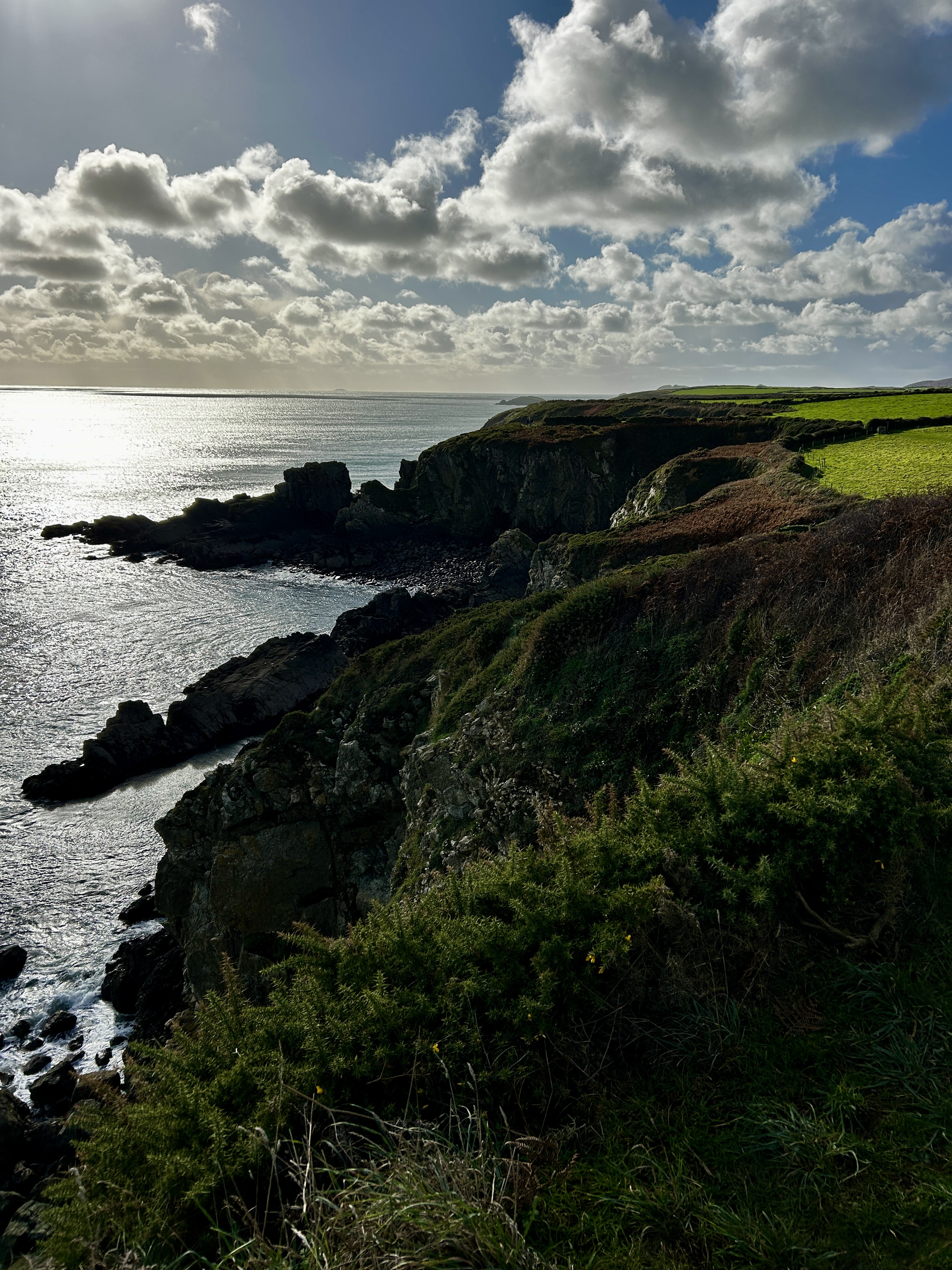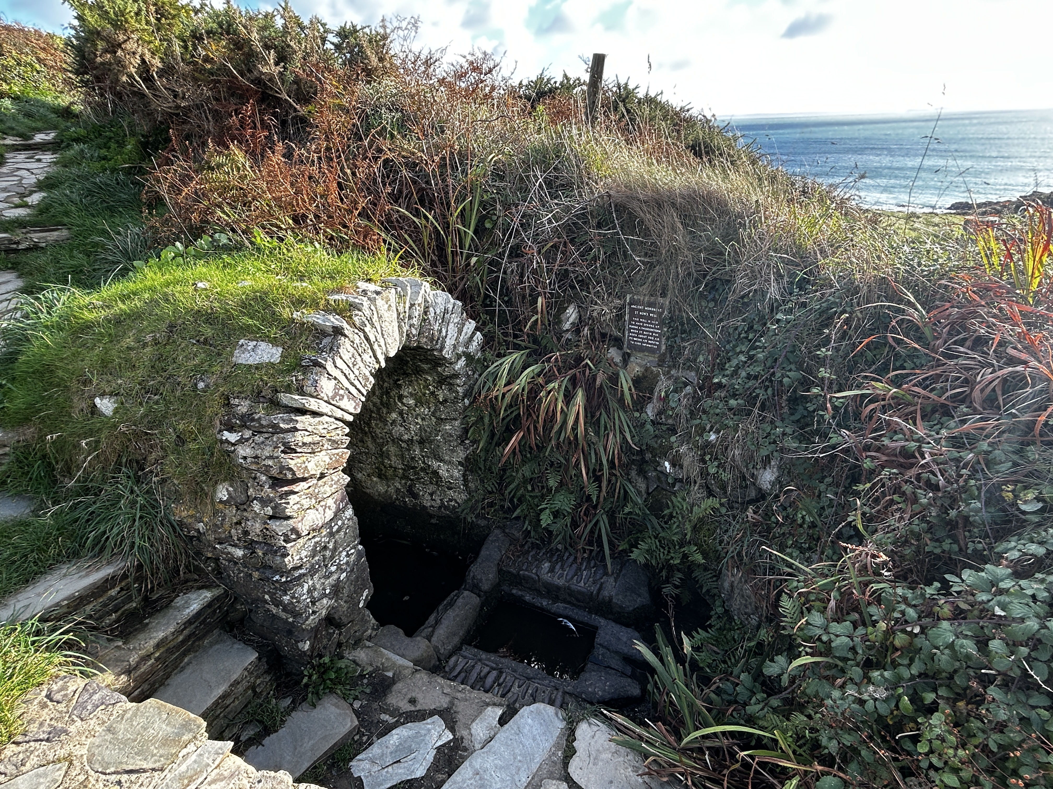 - We (attempted to) visit the tiny ruins of St. Non’s Chapel (guarded by a local bull at the time of our visit), but did see St. Non’s Well (where I touched the waters) and touched our feet to the Pembrokeshire Coast Path, taking in the stunning coastline.