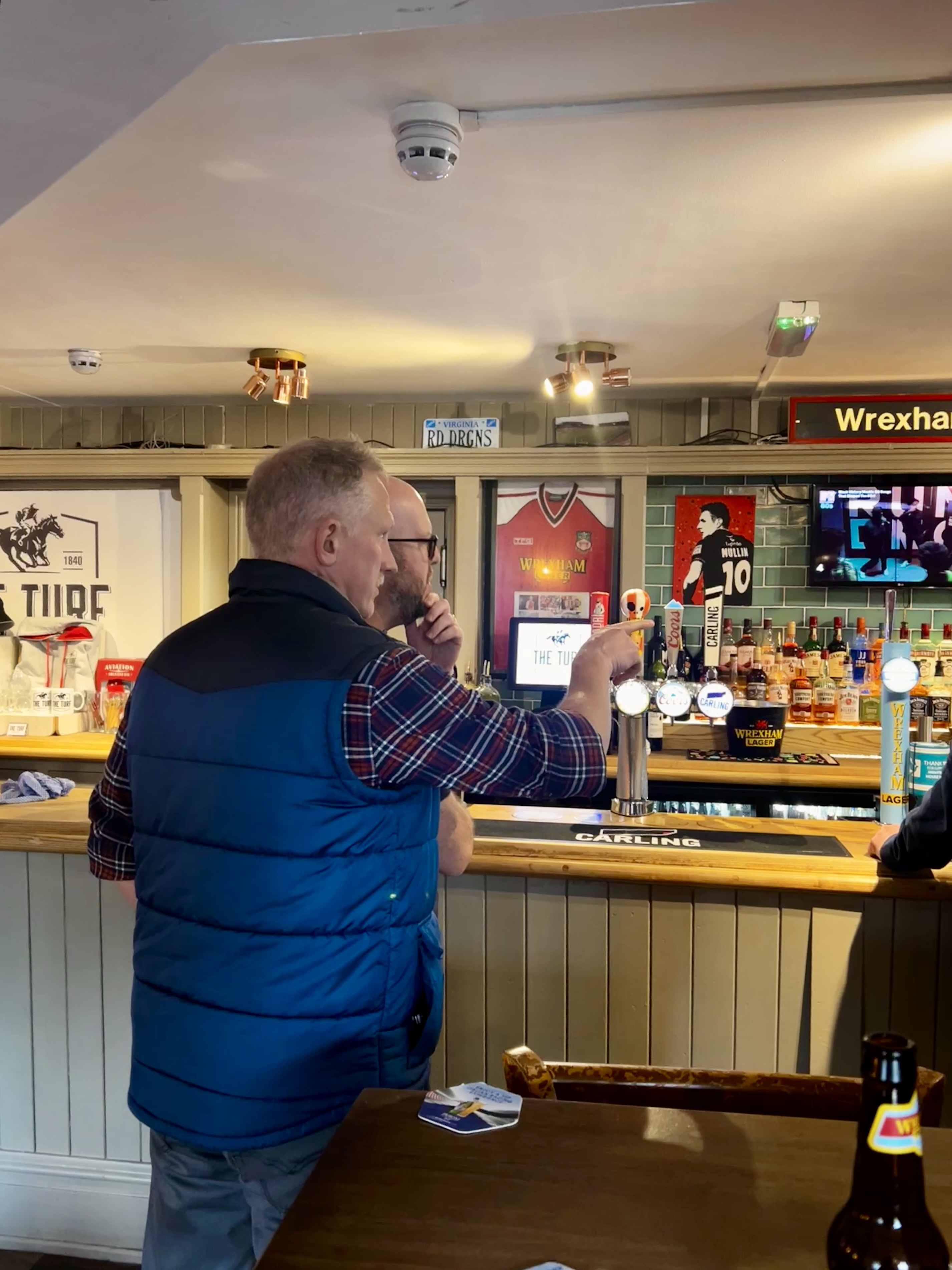 - The pastoral rolling hills dotted with sheep were a beautiful sight as we drove to Wrexham, where we stopped for lunch at the famed “The Turf” pub next to the Racecourse (where the Wrexham A.F.C. play). It was under renovation so we had to peek through the fence. The Welsh locals were very friendly!